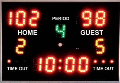 IDŐ: időmérés előre/vissza (az utolsó percen 1/100 mp.), időkérés, automata duda, félidő